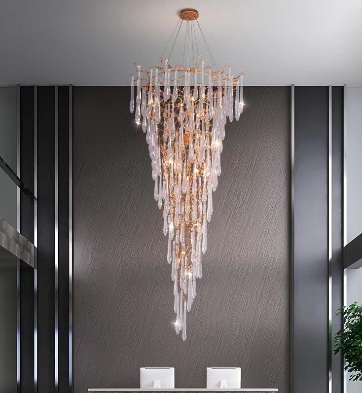 Modern Luxury Brass Raindrop Crystal Gold Branch Chandelier light